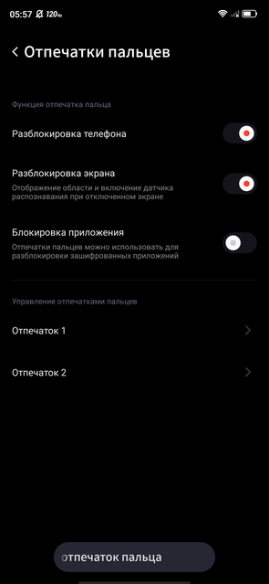 - медленный подэкранный сканер отпечатков пальцев;
