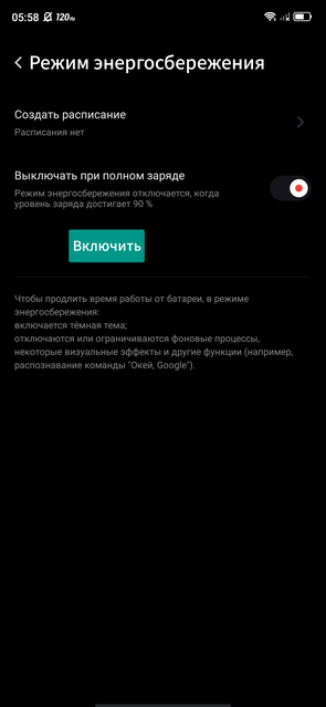 В ZTE Nubia Play установлен аккумулятор на 5100 мАч, есть поддержка быстрой зарядки Quick Charge 3.0 на 30 Вт, но в комплекте только БП на 18 Вт. От него смартфон заряжается чуть более двух часов. Что же касается автономности, то всё будет очень существенно зависеть от времени в играх и частоты обновления экрана. Полагаю, что самые заядлые геймеры будут высаживать смартфон уже к позднему вечеру. У меня смартфон жил стабильно 1.5 дня при 120 Гц и порядка 40 минут — 1 часа игр (и, конечно же, всего остального в привычном режиме). При необходимости время работы можно продлить с помощью энергосберегающего режима. Либо переключиться на 60 Гц частоту обновления экрана.