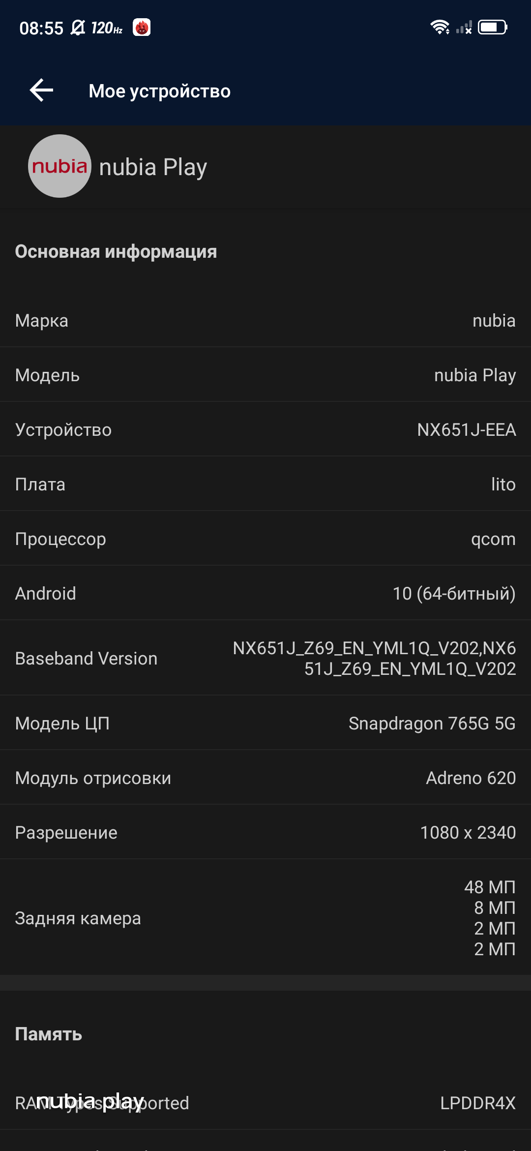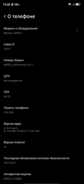 | Операционная система | Android 10 + Nubia UI 8.0.2 |