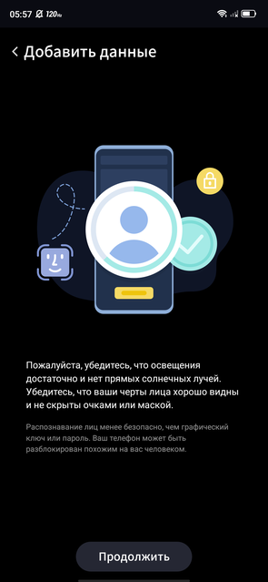 Сканер отпечатков пальцев подэкранный, оптический. В целом, он работает на уровне относительно недорогих смартфонов: медленнее, чем классические ёмкостные. И иногда бывают ошибки. Бывало и хуже, но есть уже достаточно моделей, где данная технология реализована лучше. Полагаю, с обновлениями будут "допиливать". Распознавание лица тоже работает привычно: с помощью фронтальной камеры. При хорошем освещении работает точно и относительно шустро.