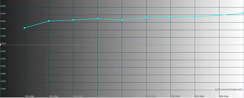 В режиме "нормальный" максимальная яркость составляет очень внушительные 454.015 кд/м². Цветовой охват при этом существенно шире sRGB, а цветопередача немного уходит в холодные оттенки из-за небольшого переизбытка синего. Забегая вперёд стоит сказать, что подобная ситуация во всех трёх режимах и если нравится картинка "потеплее", то можно откорректировать вручную.