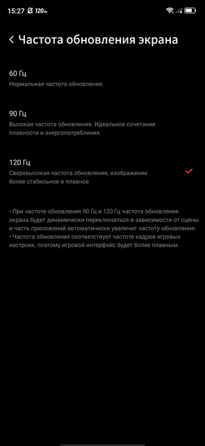 В настройках экрана есть уйма всего, включая тёмную тему, защиту глаз, настройку Always on Display (с кучей возможностей кастомизации), выбор частоты обновления (доступны 60, 90 и 120 Гц), три режима цветопередачи и ручная настройка цветовой температуры. Не нашлось только DC Dimming. Возможно люди с чувствительными глазами заметят мерцание. Штука очень индивидуальная.