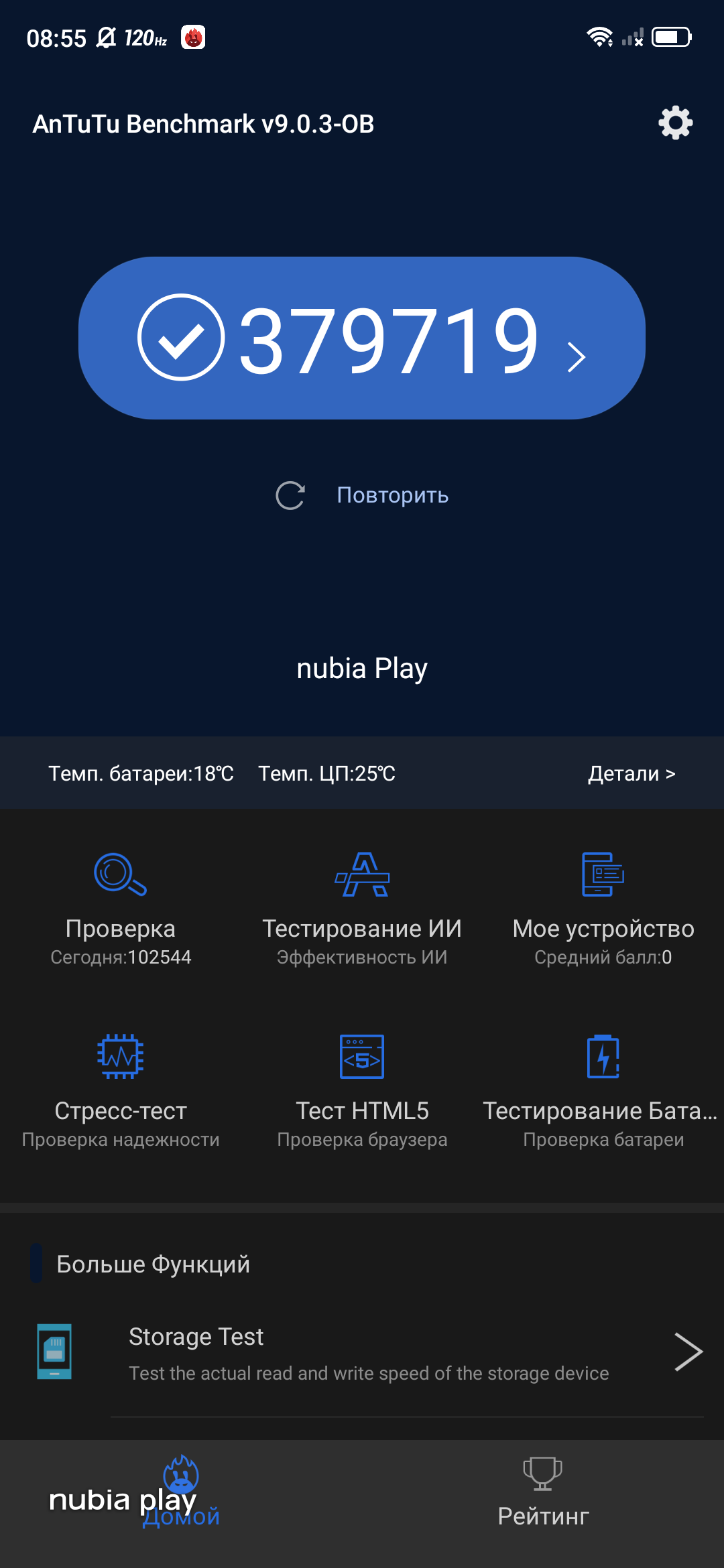 - ZTE Nubia Play оснащён большим, качественными AMOLED-экраном с частотой обновления 120 Гц.